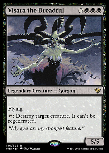 Pick 4 (Visara the Dreadful): Miałem dylemat między Visarą a Maggotem. Wziąłem tę pierwszą kartę, bo Maggot wydawał mi się zbyt wrażliwy na cokolwiek, a chciałem się trzymać WB kolorów.
