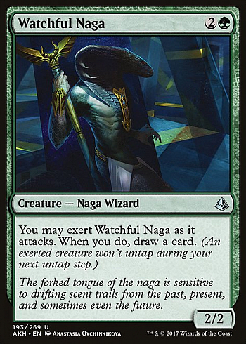 Pick 33 (Watchful Naga): Naga może być niezła i chyba nie powinienem brać nad nią Monumentu Oketry, ale nie wiem, czy inni gracze by jej jednak nie wzięli. Zielony kartusz i Watchersi to też opcja, ale raczej Naga za dużo oferowała mojej talii.